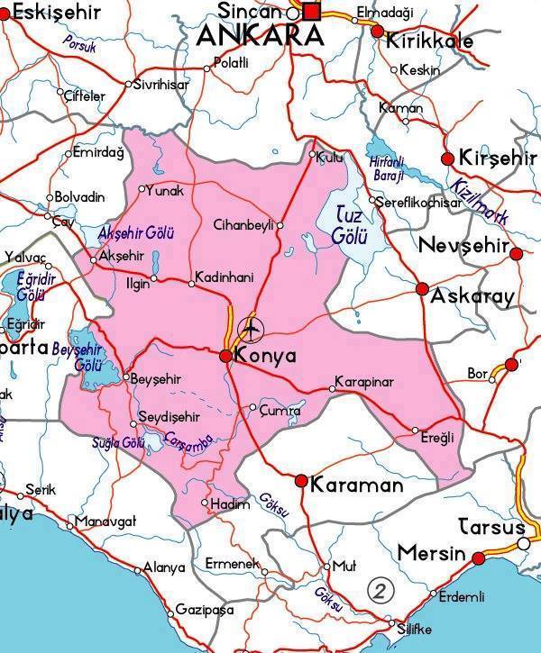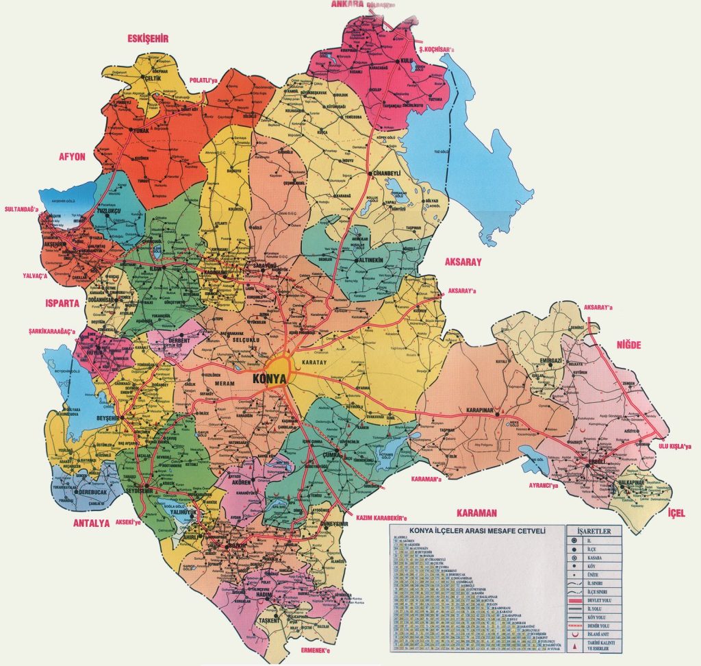 Türkiye’nin yüzölçümü olarak en büyük şehri olan Konya’ya ait Siyasi Konya Haritası‘nı geziniz sırasında yardımcı olması amacıyla buraya ekliyoruz. Konya gezinizde işinize yarayacak Konya Gezi Rehberi içeriğimize göz atmayı unutmayın.